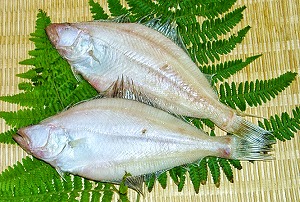 山陰では一番なじみのあるカレイです。カレイの乾燥状態を見た目で判別するにはシワの状態を観察するとよく判ります。 シワが深いほど乾燥状態は進んでいます。(シワは干しの証です)