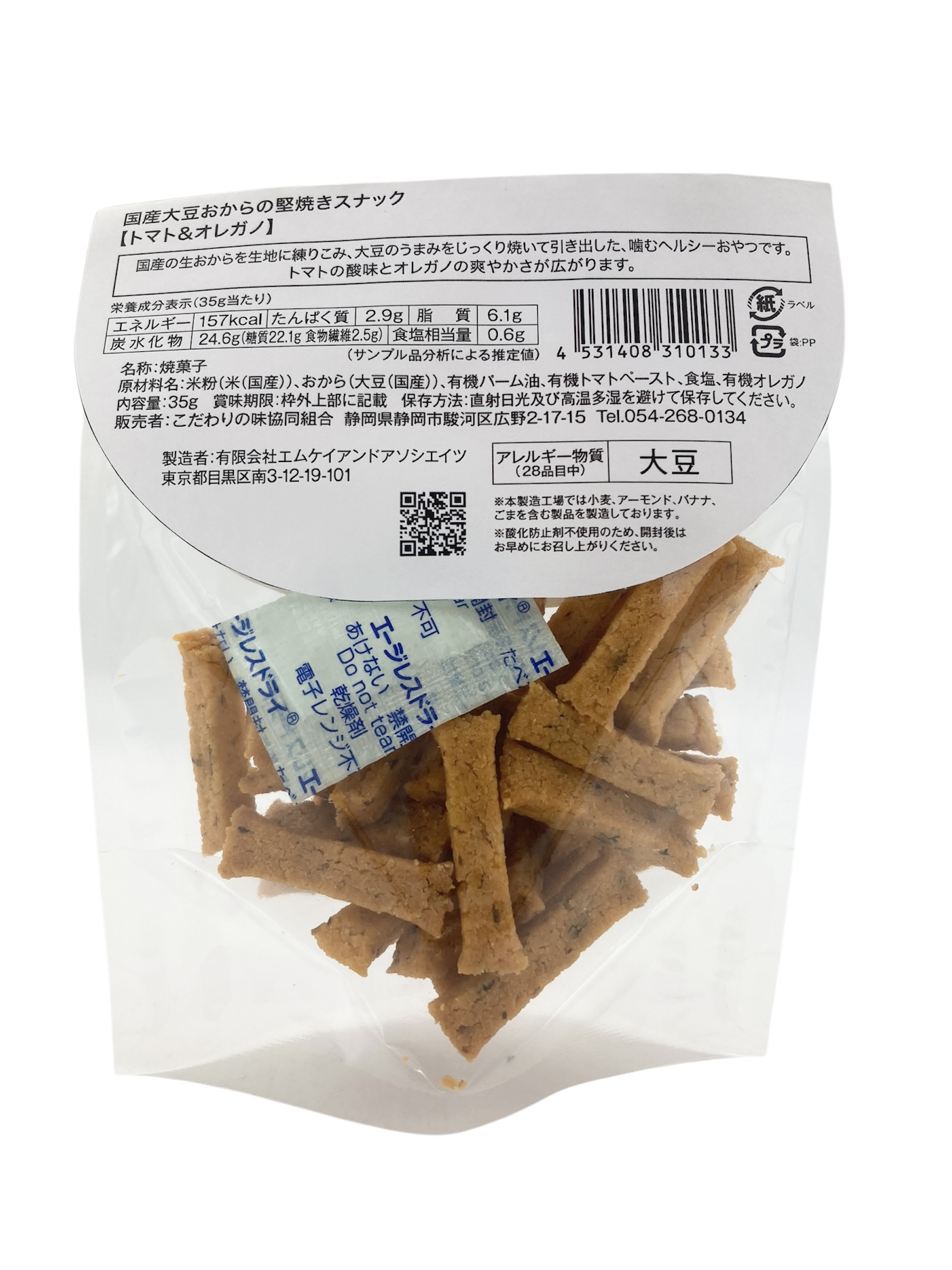 | 原材料 | 米粉(米(国産))、おから(大豆(国産))、有機パーム油、有機トマトペースト、食塩、有機オレガノ |