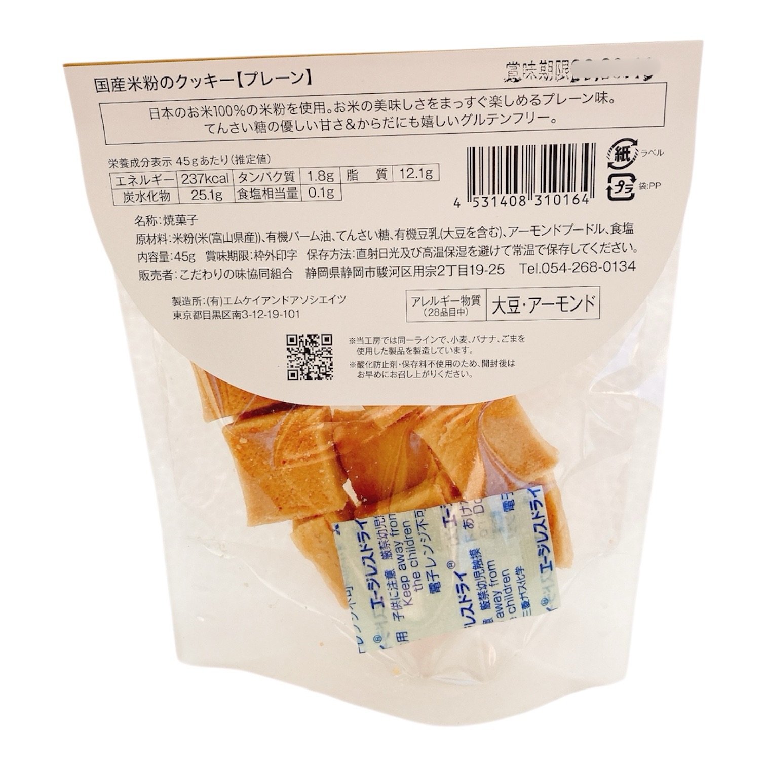 | 原材料 | 米粉(米(富山県産))、有機パーム油、甜菜糖、有機豆乳(大豆を含む)、アーモンドプードル、食塩 |