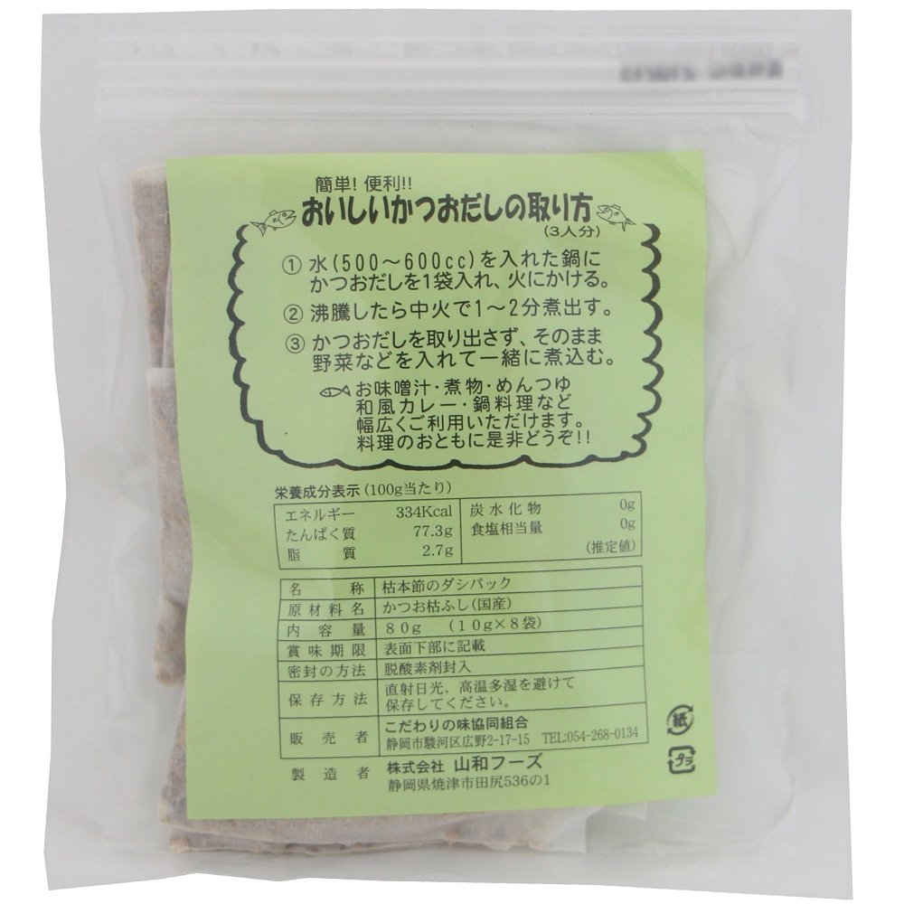 静岡県の焼津港で水揚げされた鰹を焼津で鰹節にした鰹だしパックです!昔乍らの枯本節を微粉末に削り、だしを出やすくしました。