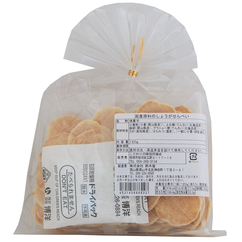 高知県産しょうがの絞り汁で蜜を作り、小粒のたまごせんべいにつけた、風味の良いしょうがせんべいです。