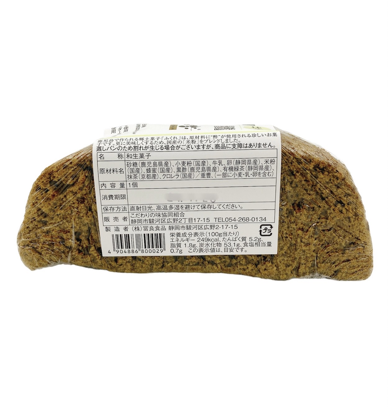 | 原材料 | 砂糖(国産)、小麦粉(国産)、低温殺菌牛乳(三重県四日市産)、卵(静岡県富士産)、米粉(国産)、蜂蜜(国産)、二年熟成黒酢、重曹、有機緑茶(静岡県産)、抹茶(京都産)、クロレラ(国産)、(原材料の一部に小麦、乳、卵を含む) |