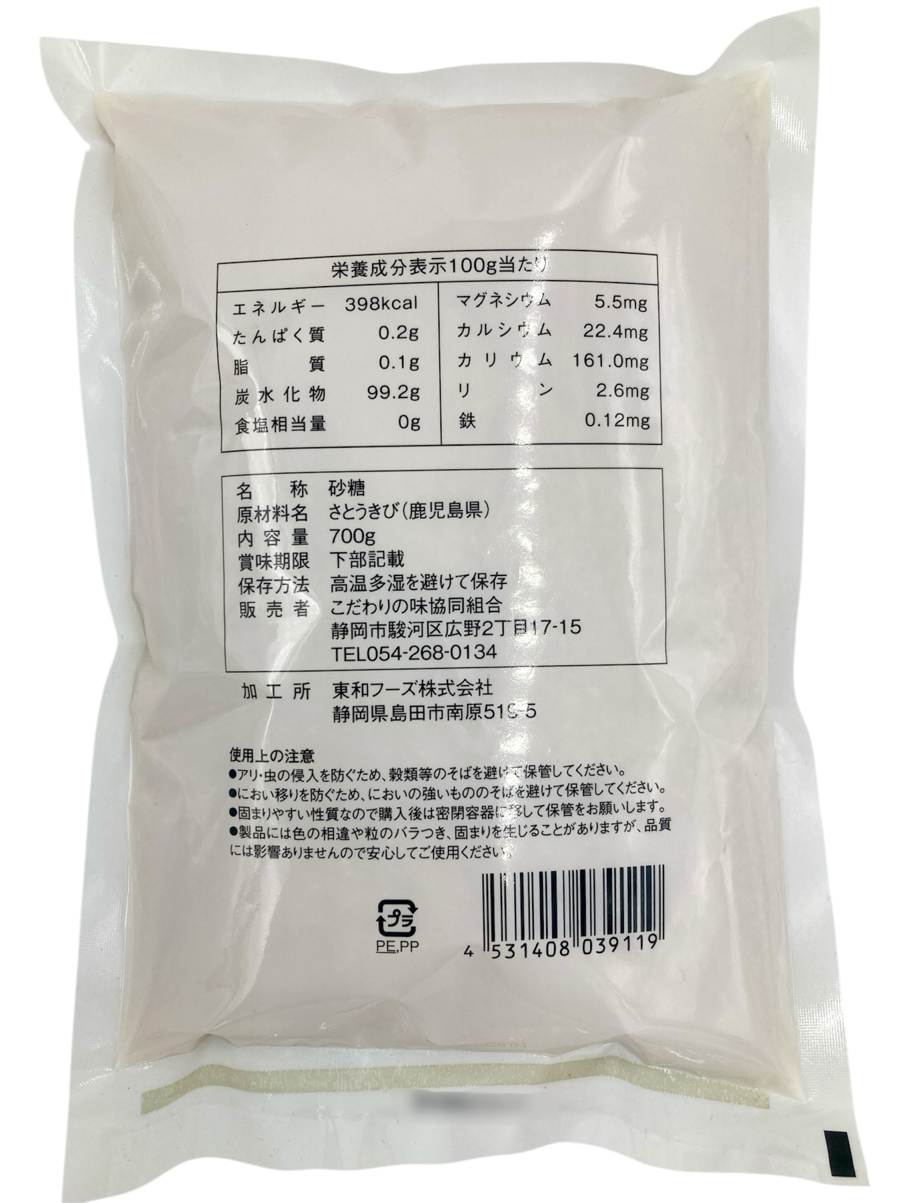 | 保存方法 | 直射日光を避け、冷暗所に保存。砂糖は湿気を帯びると固結しますので、水濡れにはご注意下さい。砂糖は他の臭いが移りますので、臭気性のある物との同居・蔵置は避けて下さい。 |