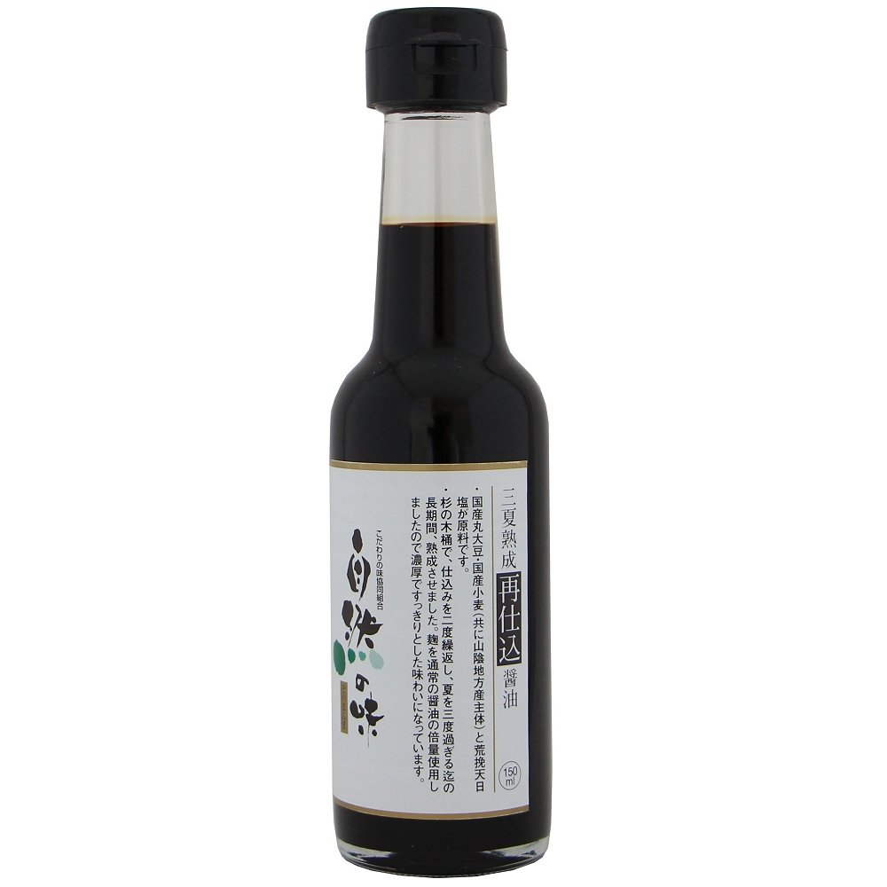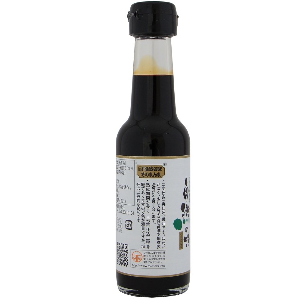 二度仕込(再仕込)醤油です。味わいが深く、さしみ等のつけ醤油や佃煮製造等にも良く合います。
