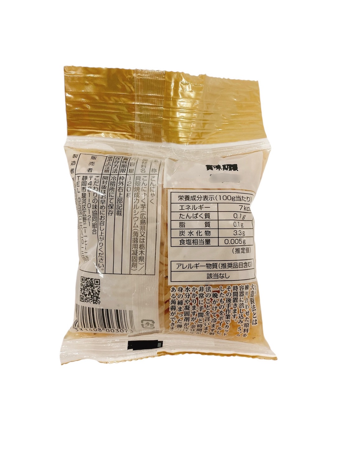 原材料 こんにゃく芋(広島県又は栃木県)/貝殻焼成カルシウム(蒟蒻用凝固剤)