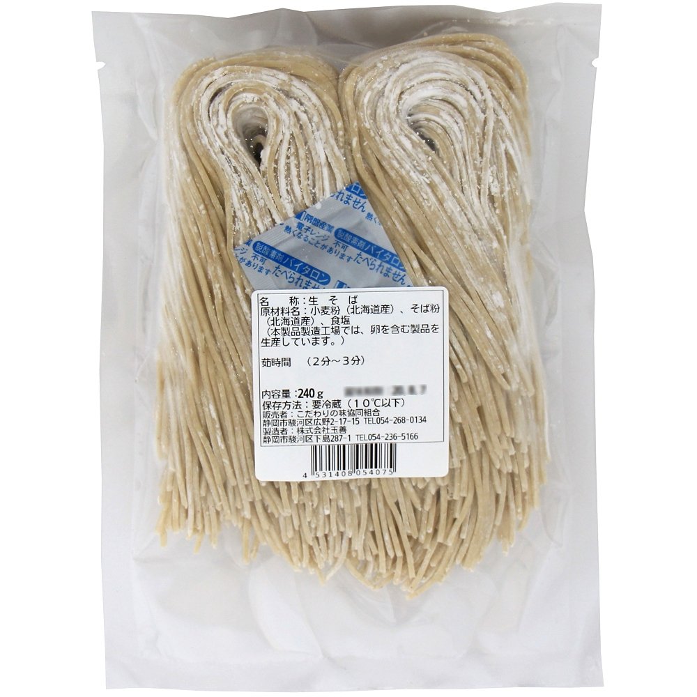 | 原材料 | 小麦粉(北海道産)、そば粉(北海道産)、食塩、(本品製造工場では、そば・卵を含む製品を生産しています) |