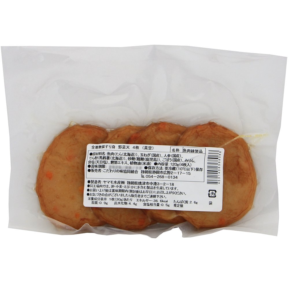 重合燐酸塩やソルビットを使用しない、全糖の鱈のすり身(北海道産)が主原料です。鹿児島県産粗糖を使用。揚げ油には「米油」を使用し、さっぱりとした味わいに仕上げました。野菜は全て国産です。