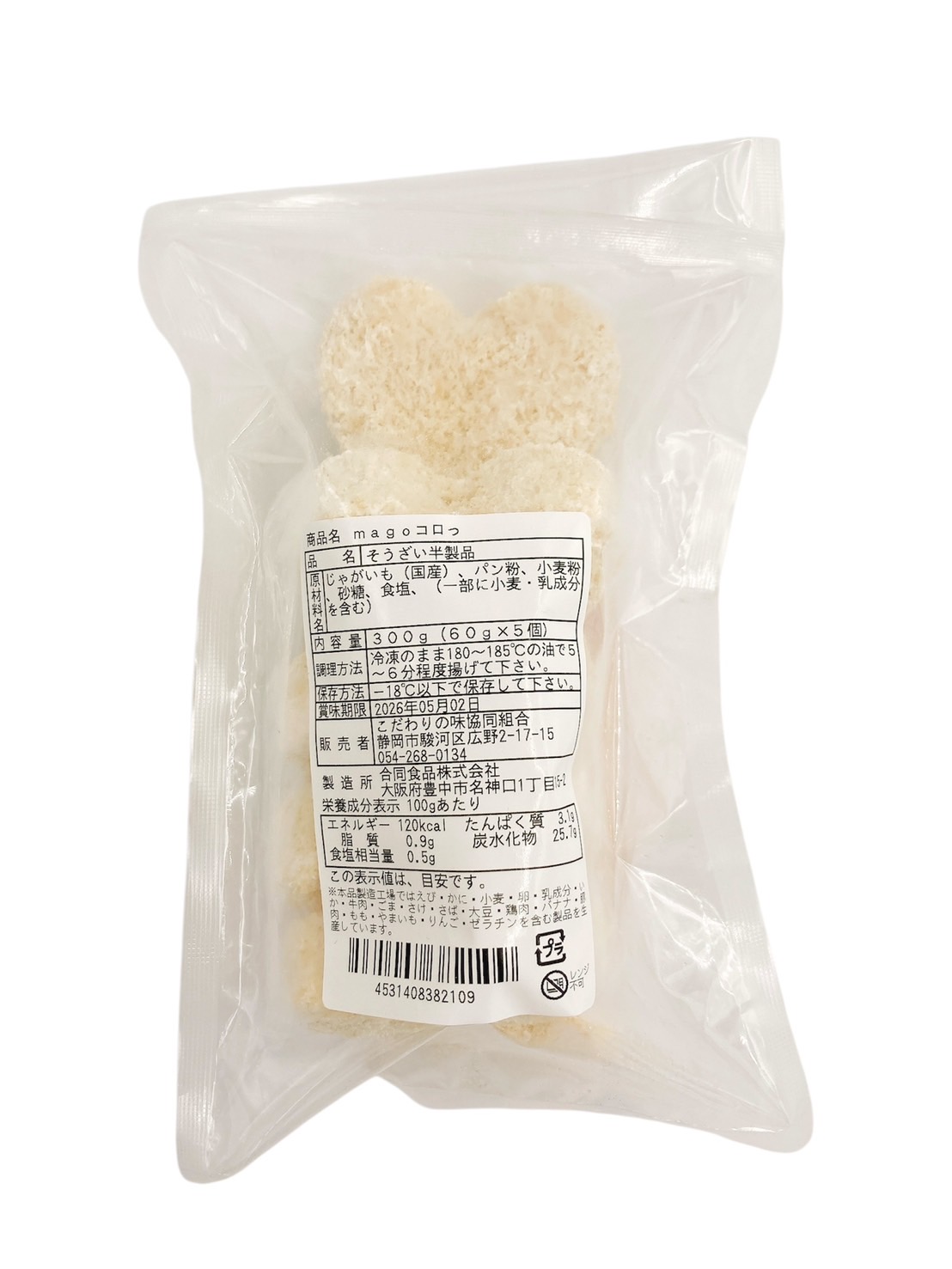 | 原材料 | じゃがいも(国産)、パン粉、小麦粉、砂糖、食塩、(一部に小麦 ・乳成分を含む) |