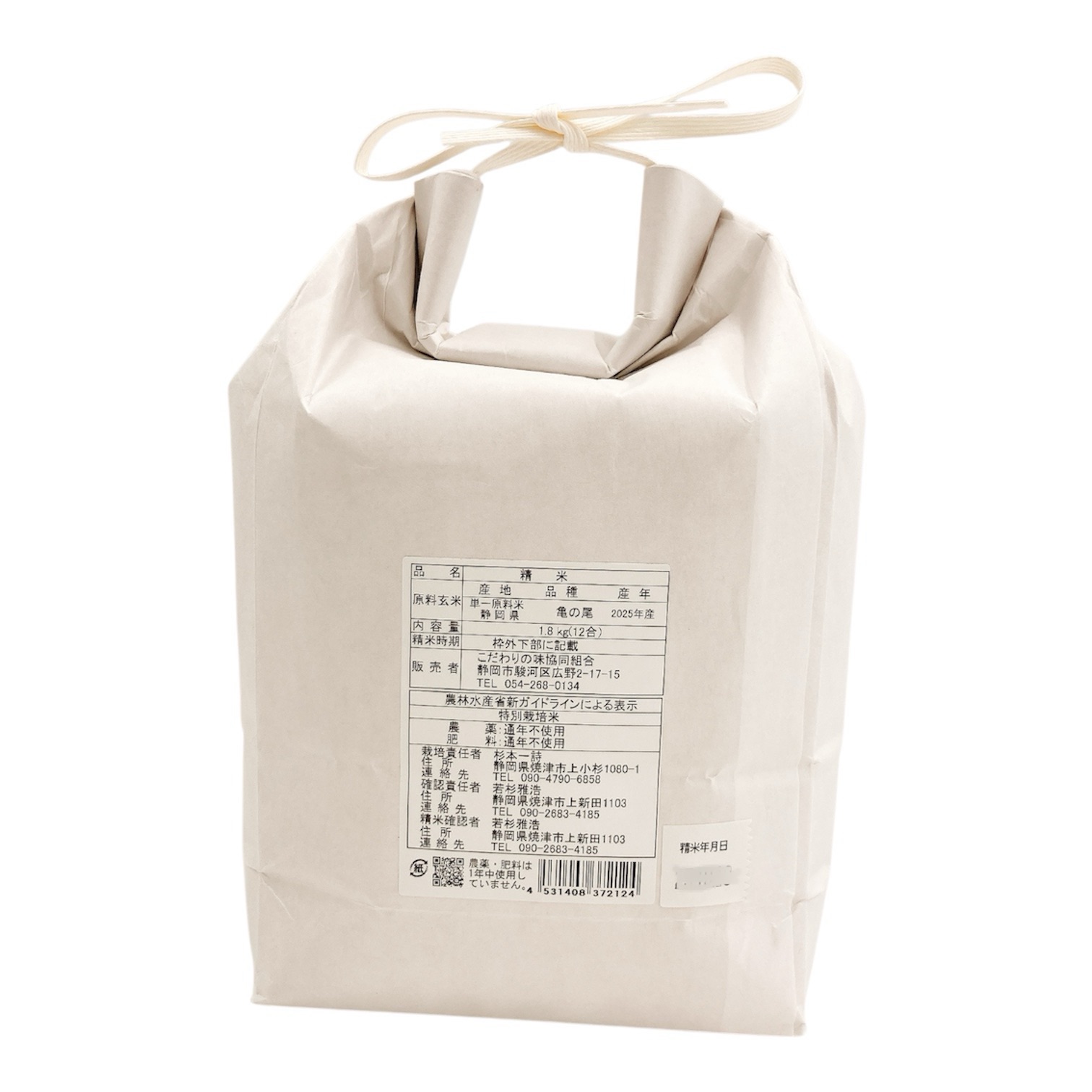 亀の尾(白米)1.8㎏