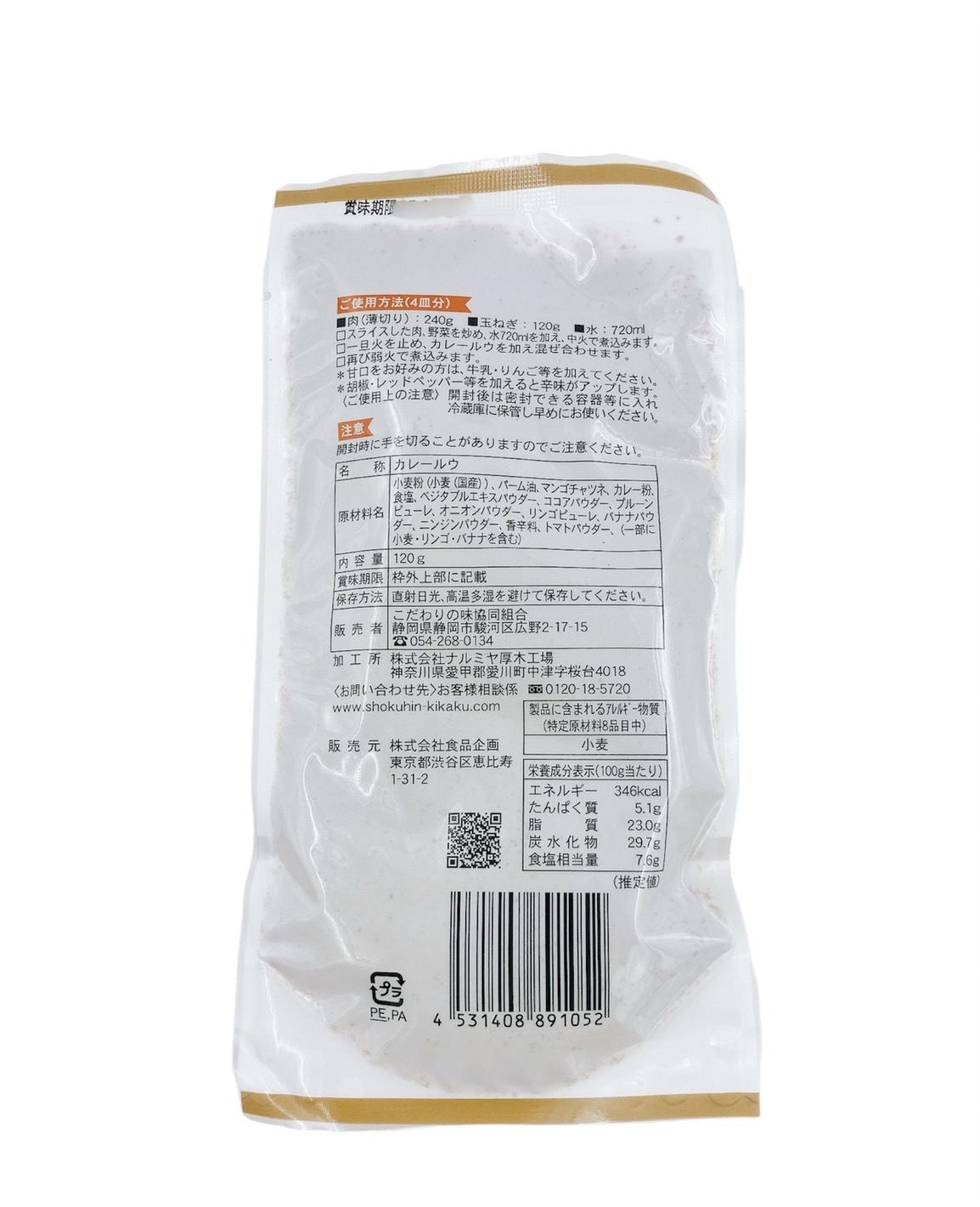 | 原材料 | 小麦粉(小麦(国産))、パーム油、マンゴチャツネ、カレー粉,食塩,ベジタブルエキスパウダー、ココアパウター、プルーンピューレ、オニオンパウダー、リンゴピューレ、バナナパウダー、ニンジンパウダー、香辛料、トマトパウダー、(一部に 小麦・リンゴ・バナナを含む) |