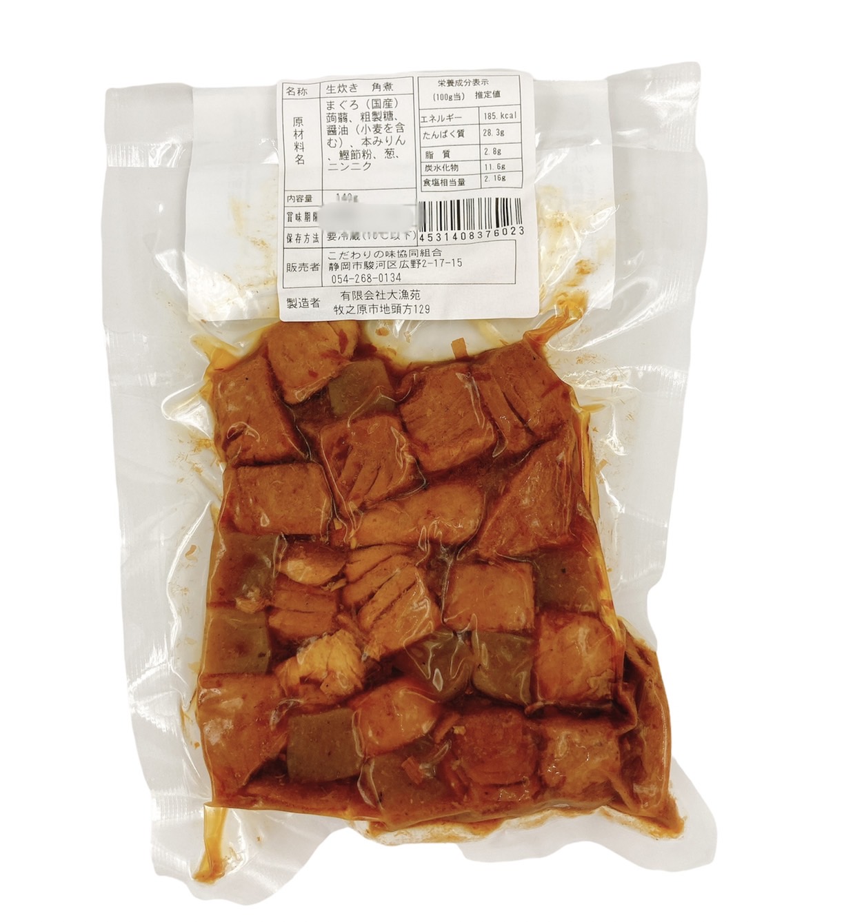 | 原材料 | まぐろ(国産)、蒟蒻、粗製糖、 醤油(小麦を含む)本みりん、 鰹節粉、葱、ニンニク |