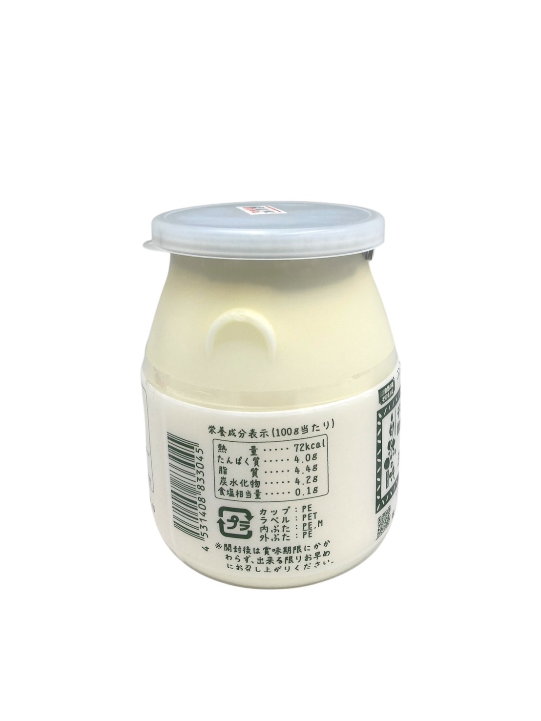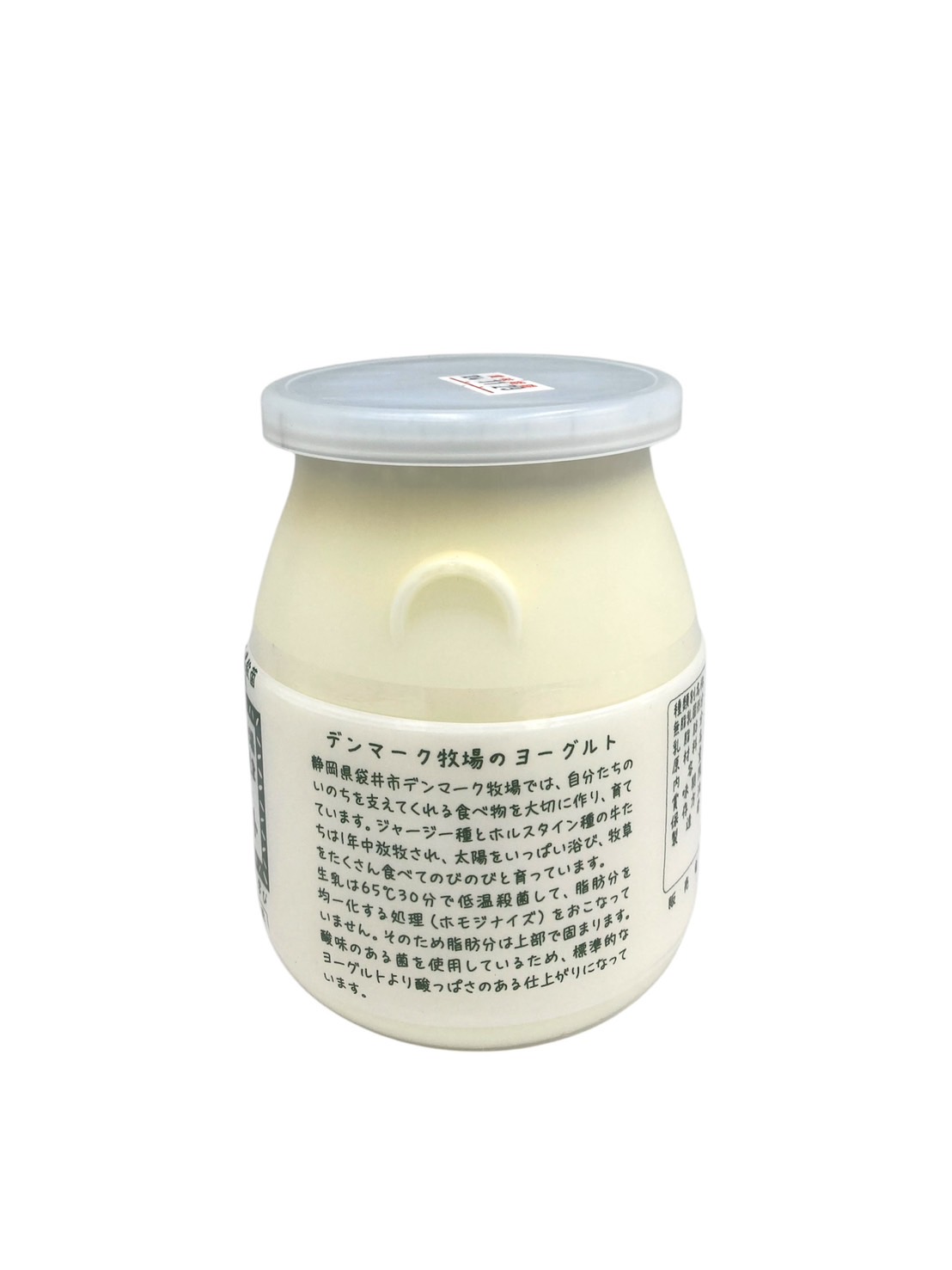 ジャージー種とホルスタイン種の牛たちは1年中放牧され、太陽をいっぱい浴び、牧草をたくさん食べてのびのびと育っています。牛乳は65℃30分で低温殺菌して、脂肪分を均一化する処理(ホモジナイズ)をおこなっていません。そのため脂肪分は上部で固まります。酸味のある菌を使用しているため、標準的なヨーグルトより酸っぱさのある仕上がりになっています。