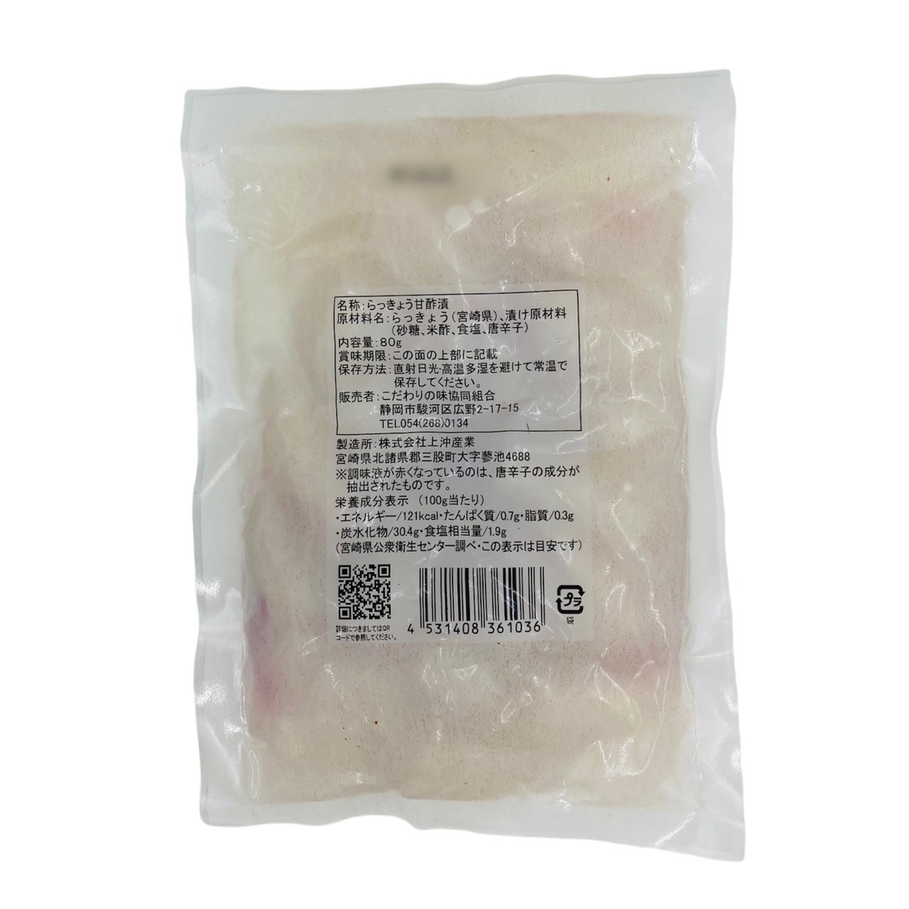 | 原材料 | らっきょう(宮崎県産)、漬け原材料(砂糖、米酢、食塩、唐辛子) |