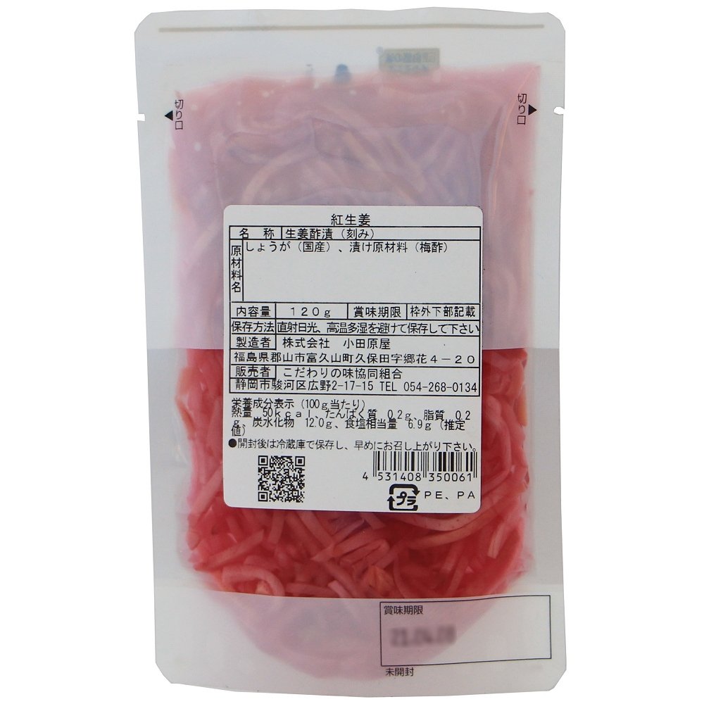 | 原材料 | 生姜(国産)、漬け原材料(梅酢) |